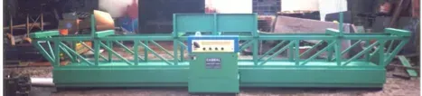 Esta balança é totalmente metálica, equipada com alavanca de suspensão para imobilização do estrado. Grades de vedação oblíqua com altura de 1,75 metros em tubo muito reforçado e forradas a chapa até à altura de 1,25 metros, são próprias para a pesagem de gado muito bravo. Equipada com duas portas de correr. Fecho de segurança com mola tensora, trancando automaticamente a porta.